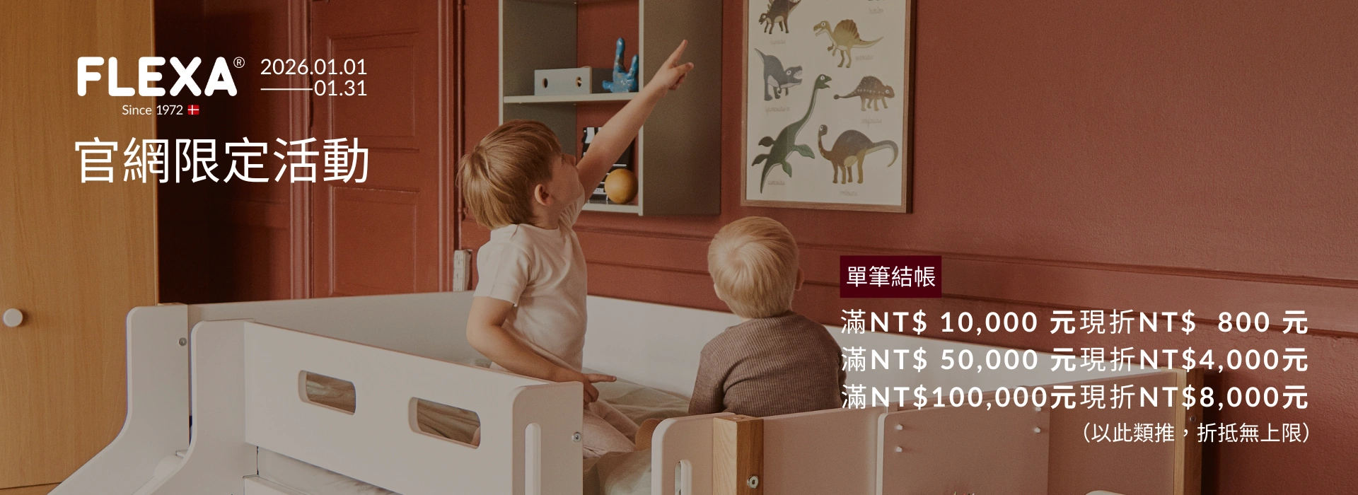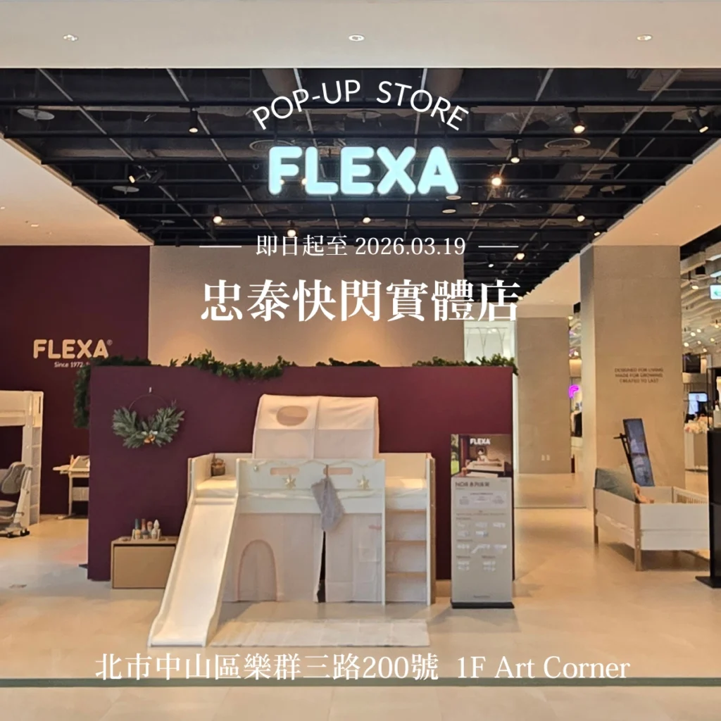 FLEXA 是源自丹麥的兒童家具品牌,擁有超過 50 年的專業經驗,致力於打造兼具安全性、功能性與設計美感的兒童家具。我們的產品涵蓋 睡眠、學習與遊戲三大成長領域,並以模組化與可調式設計,陪伴孩子從幼兒一路成長。
