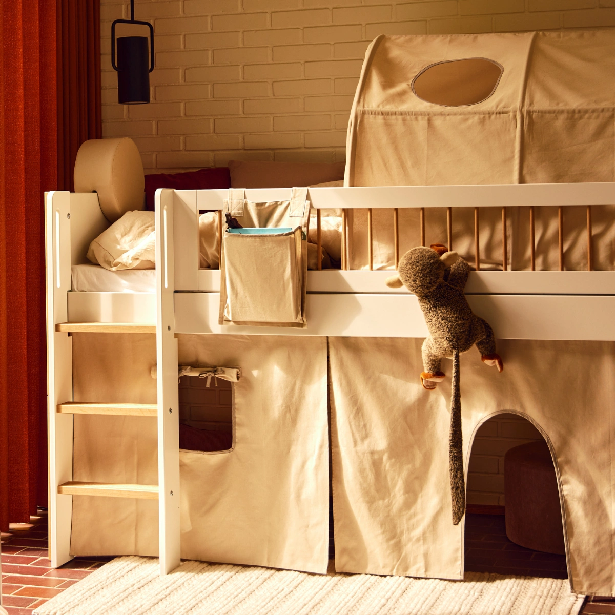 三件一組的床邊收納袋,讓孩子最喜愛的玩具或睡前故事書隨手可得,陪伴每一場睡前的小小冒險。可輕鬆掛於床邊,取放方便,讓孩子在夜晚感到安心又自在。