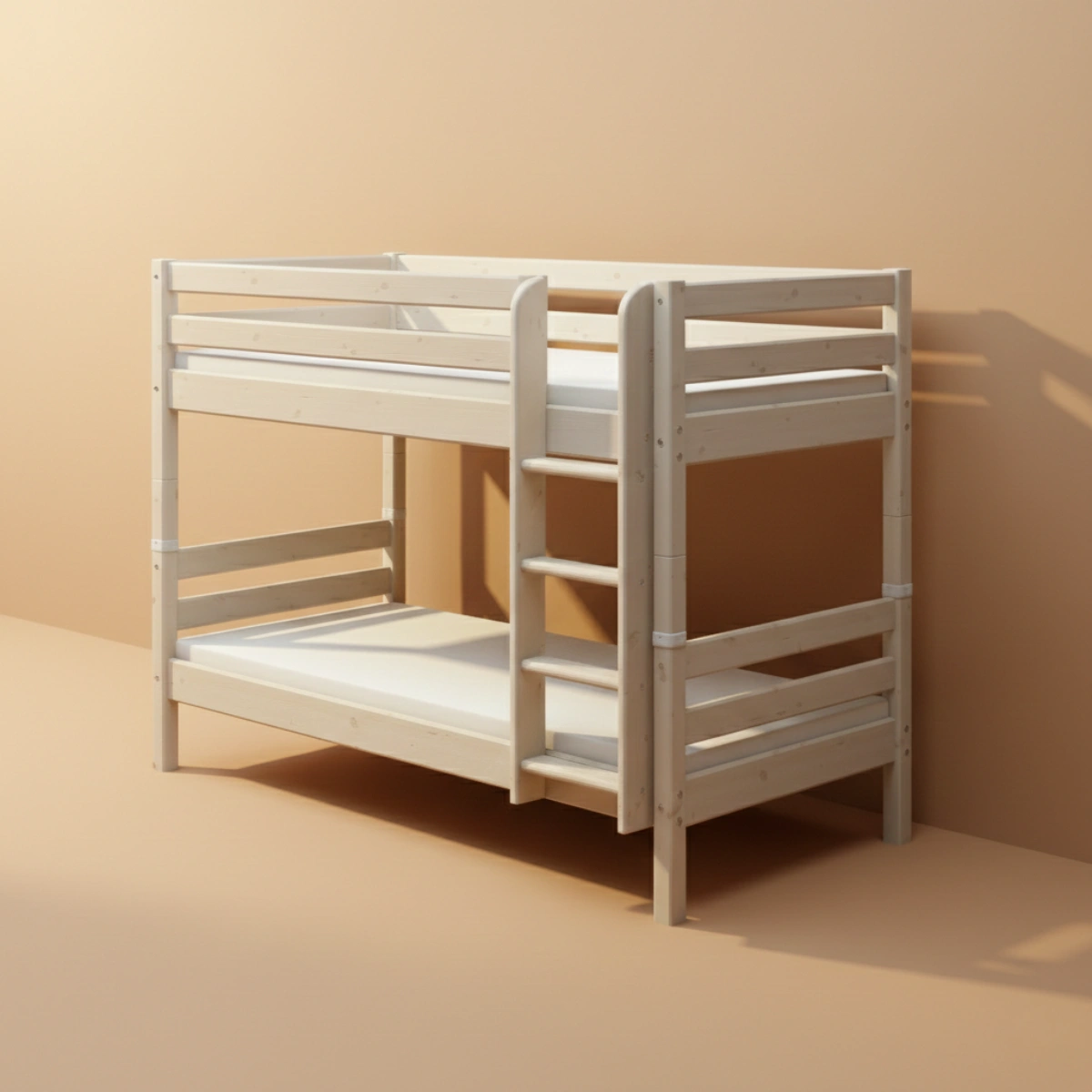 來自 CLASSIC 系列的上下舖雙層床(直梯設計與安全護欄),是空間有限家庭的完美節省空間方案。梯子具備防滑踏階,並可根據空間需求安裝於床的任一側,提升實用與安全性。