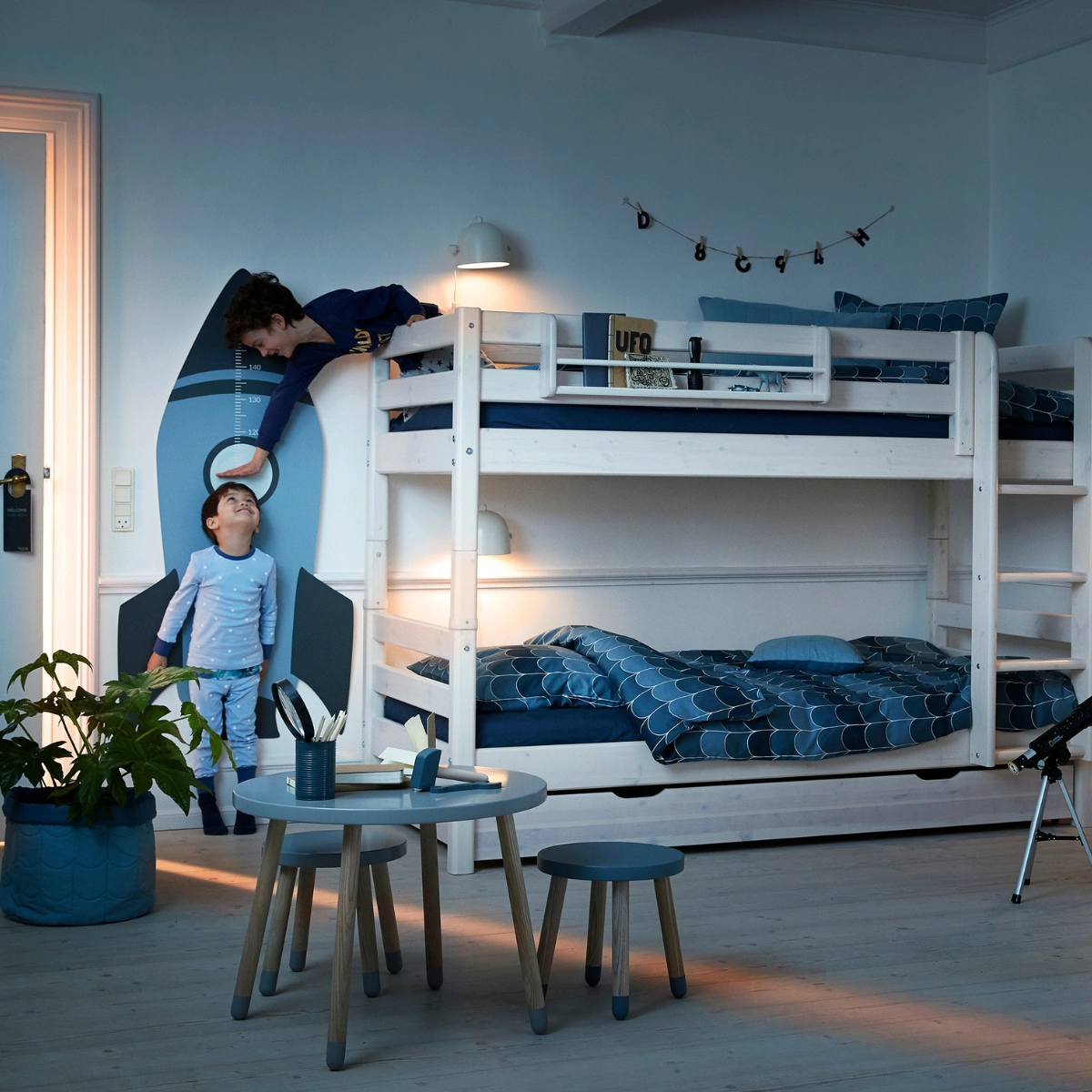 來自 CLASSIC 系列的上下舖雙層床(直梯設計與安全護欄),是空間有限家庭的完美節省空間方案。梯子具備防滑踏階,並可根據空間需求安裝於床的任一側,提升實用與安全性。