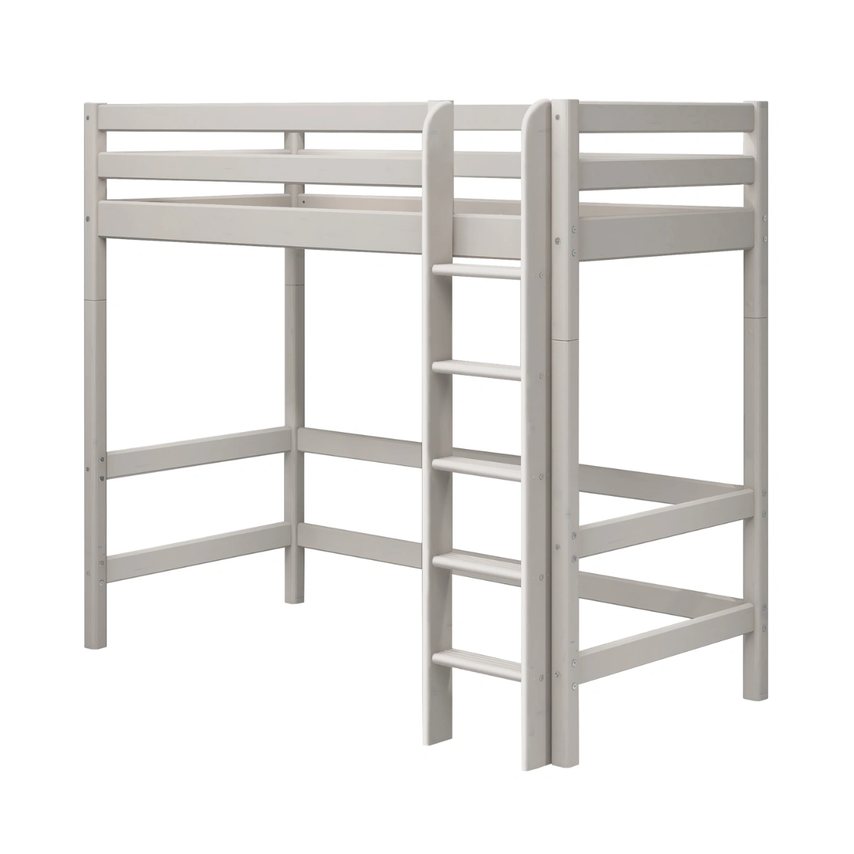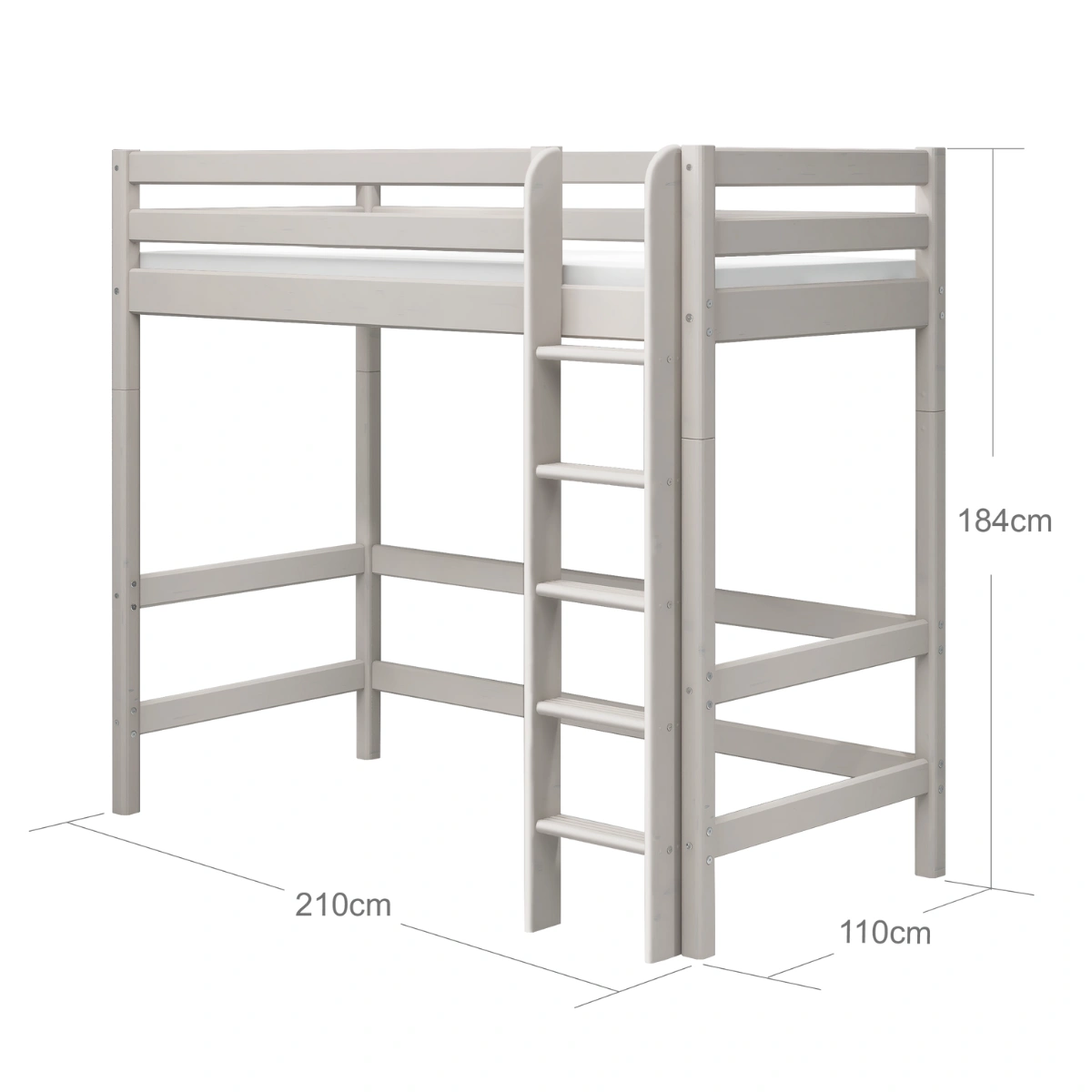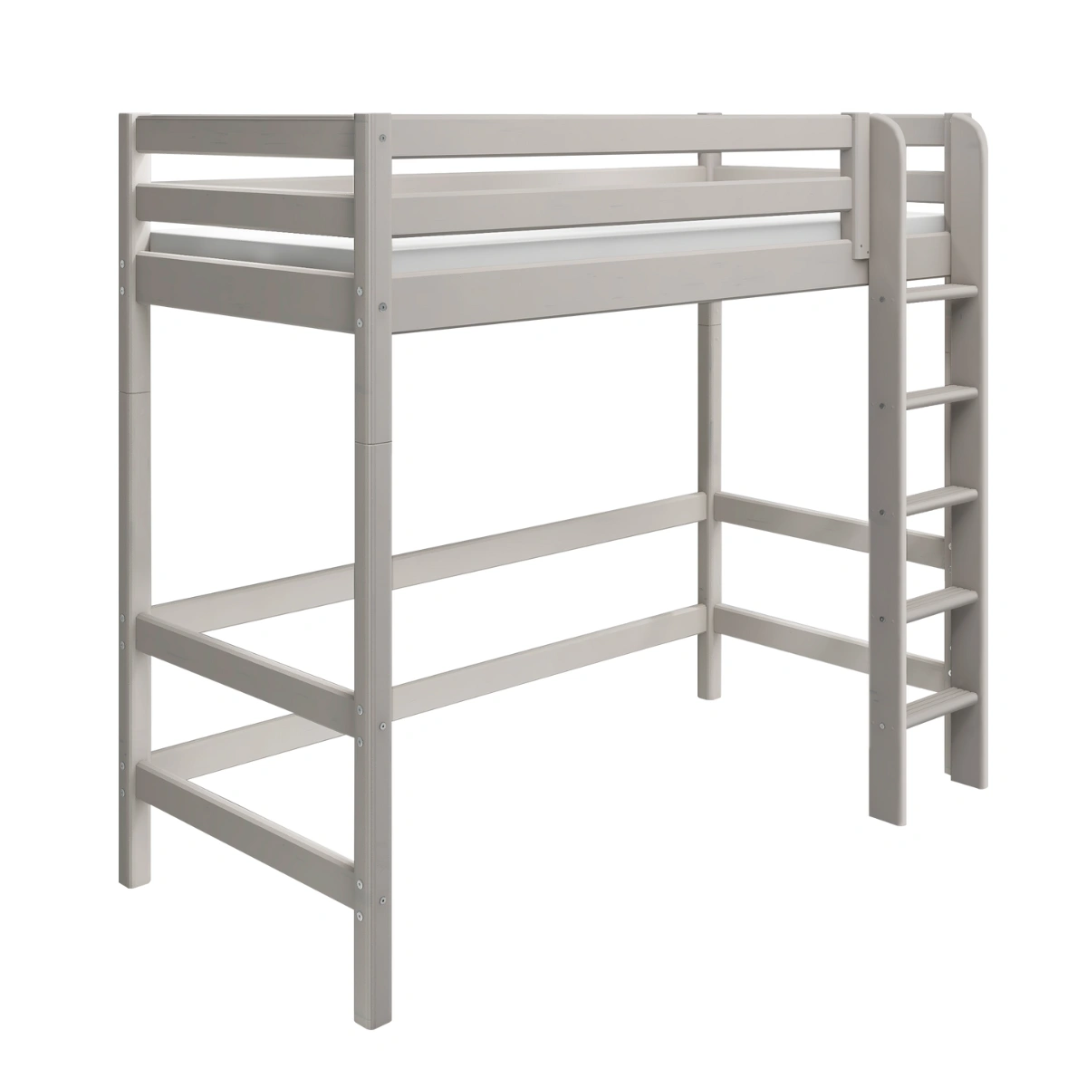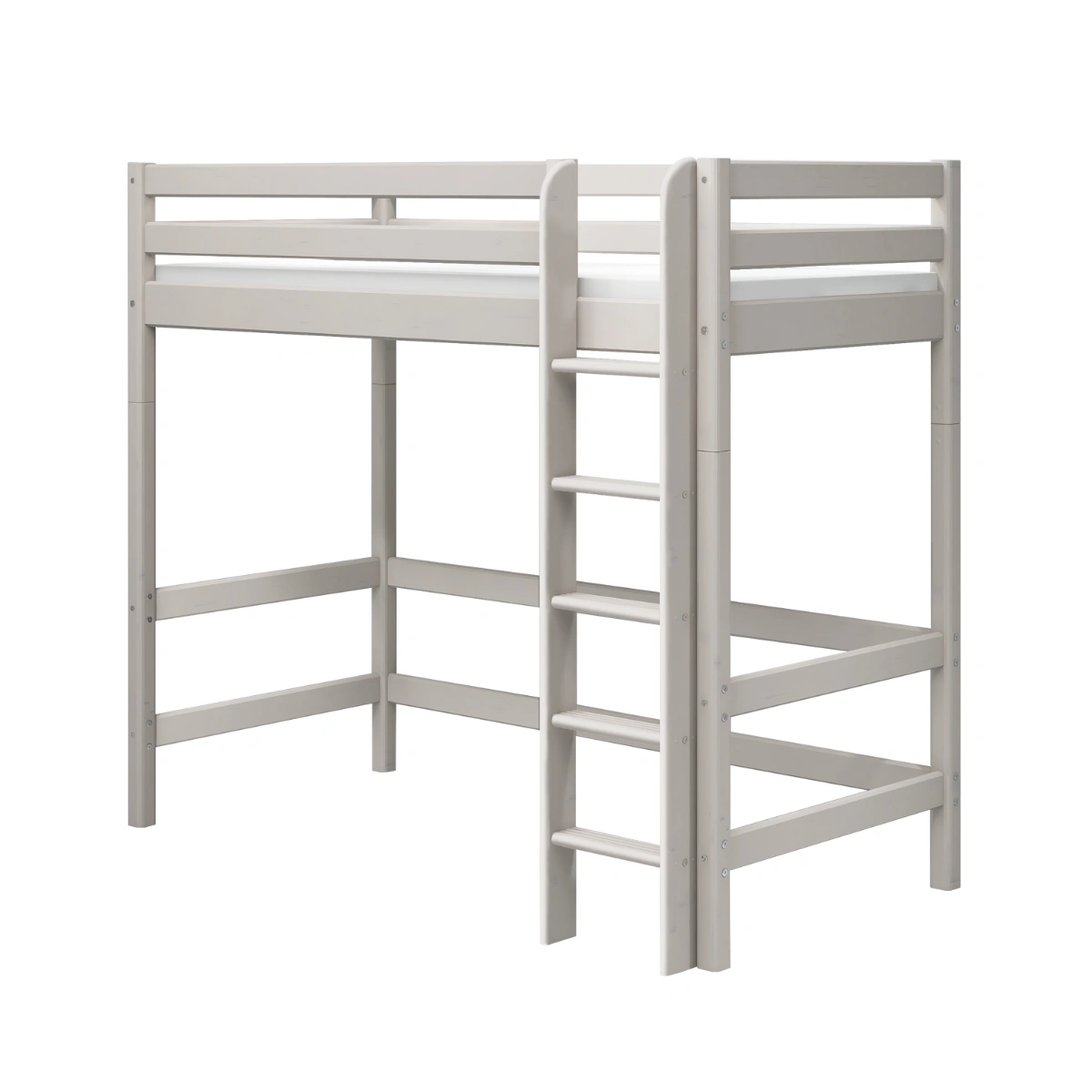 CLASSIC 高架床 配備直梯,梯子設有 防滑踏板,可安放於床的兩端,確保孩子安全上下床。床下空間寬敞,非常適合作為 收納空間 或 書桌區。