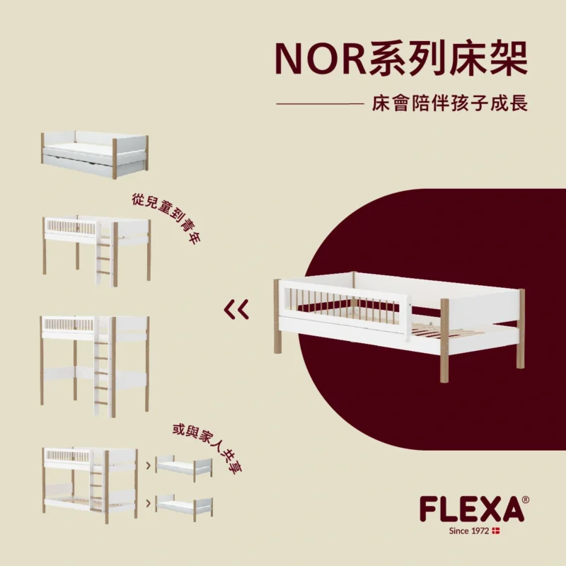 NOR 系列可隨孩子成長靈活調整。換上短床腳,即可升級為單人床;更換為高床腳,則可進一步轉換為高架床,延長使用年限、創造更多空間運用。