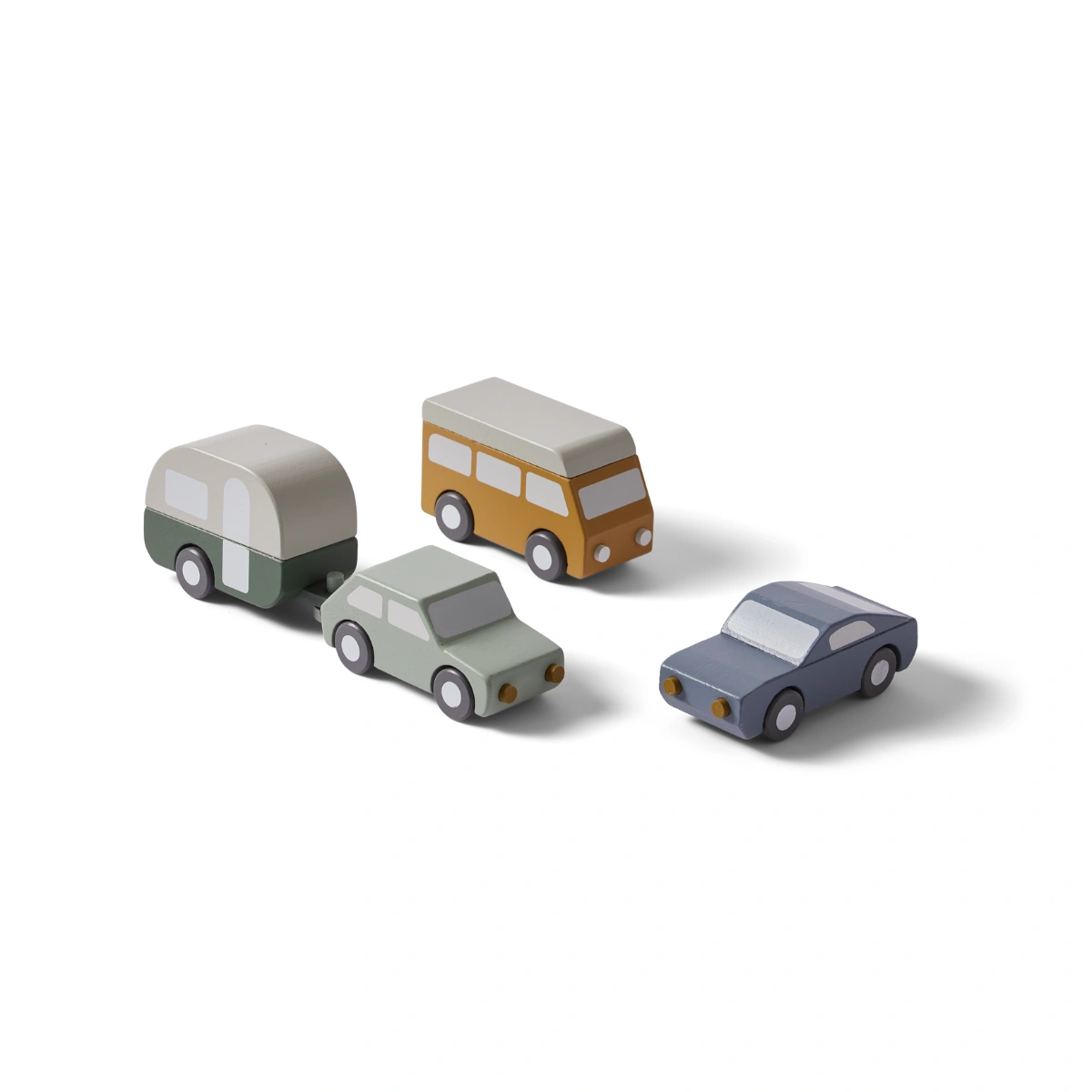 這組復古風木製汽車組是孩子開啟冒險旅程的好夥伴——跑車疾速前進、小巴士滿載乘客、小轎車穿梭街道、露營車啟程出發。多樣的車款為孩子創造豐富的情境故事,鼓勵他們透過遊戲探索生活、發揮想像力。