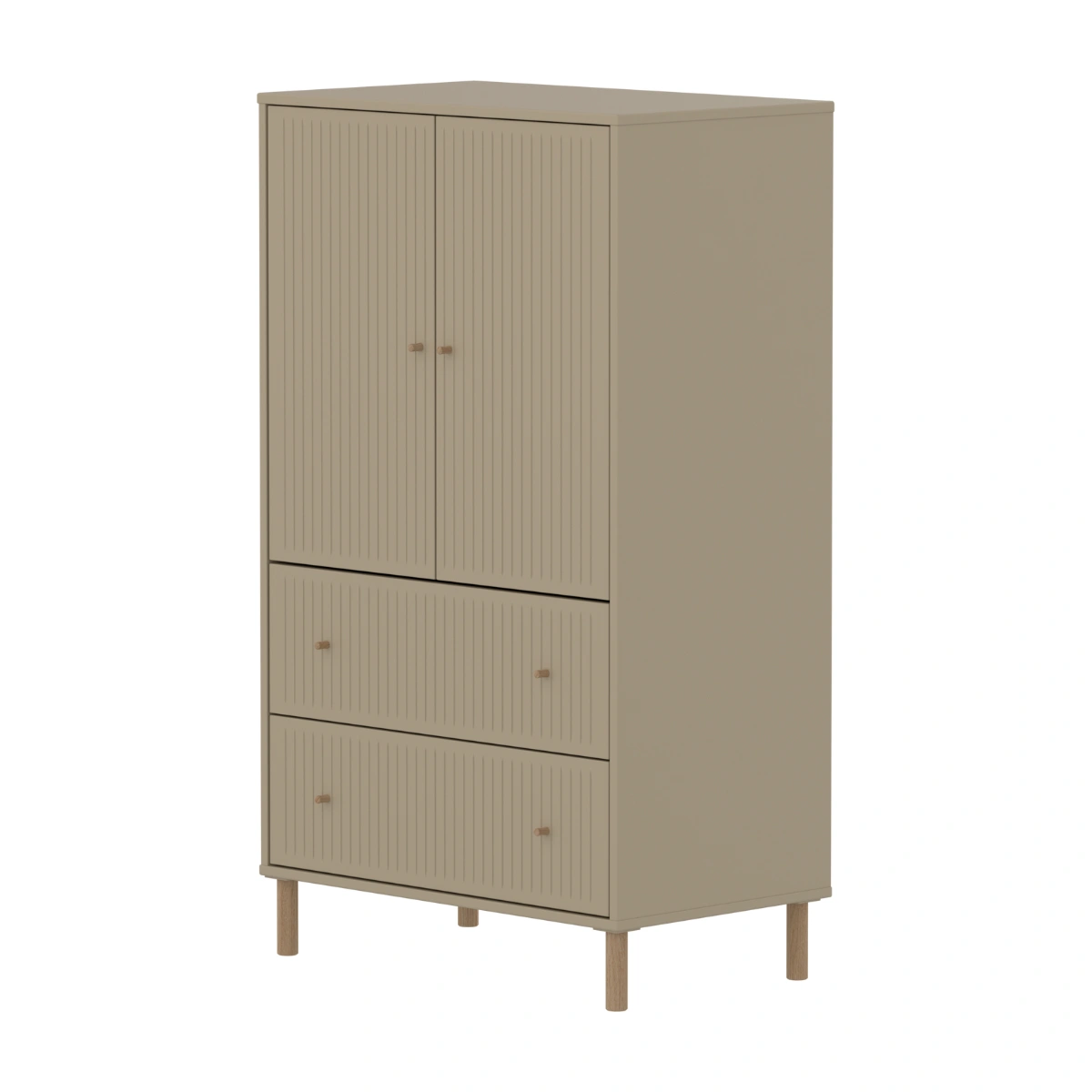SAGA系列 2門2抽橡木腳兒童櫥櫃(直序型紋理)-燕麥色