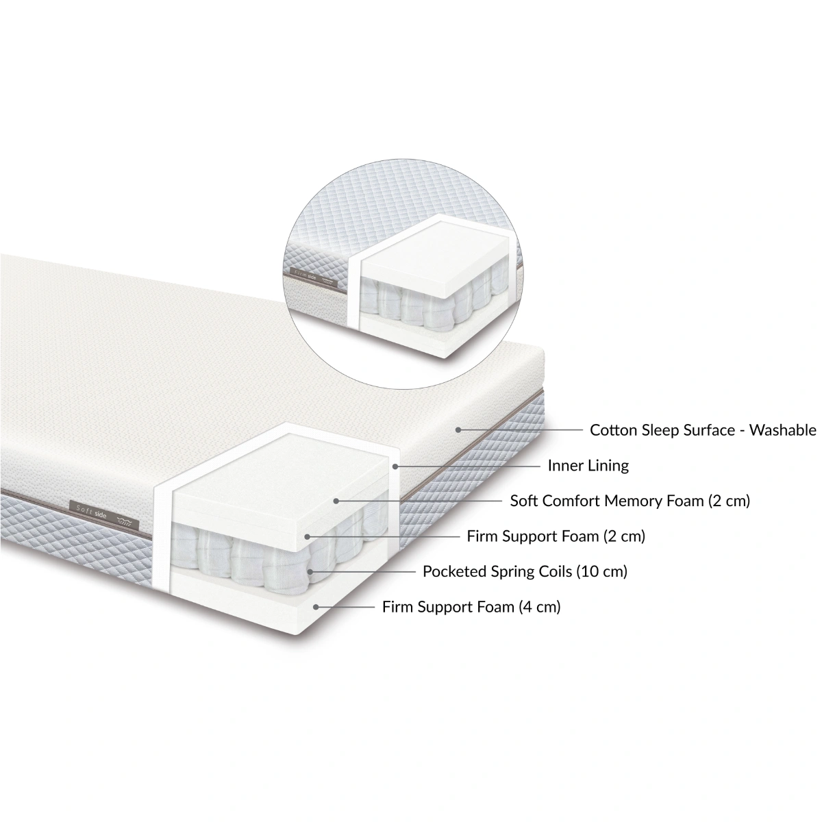 床墊高度 18 公分,內部獨立筒彈簧系統提供動態支撐並有效降低翻身干擾;同時享有 10 年保固,品質與耐用度值得信賴。選擇一張能陪伴孩子一起成長的床墊,因為好睡眠,從 BALANCE 開始。